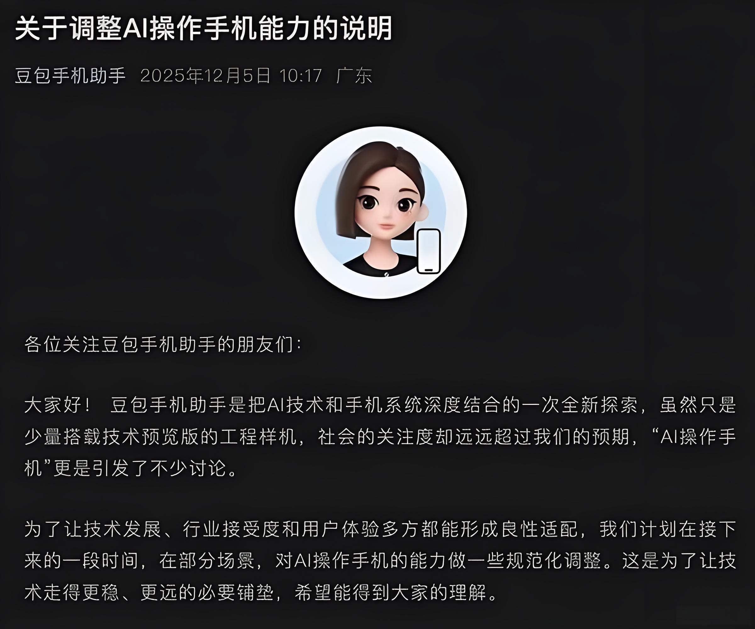 豆包手机造成的这个风波,归根结底就是现在的移动生态圈的规则有些赶不上技术的步伐。