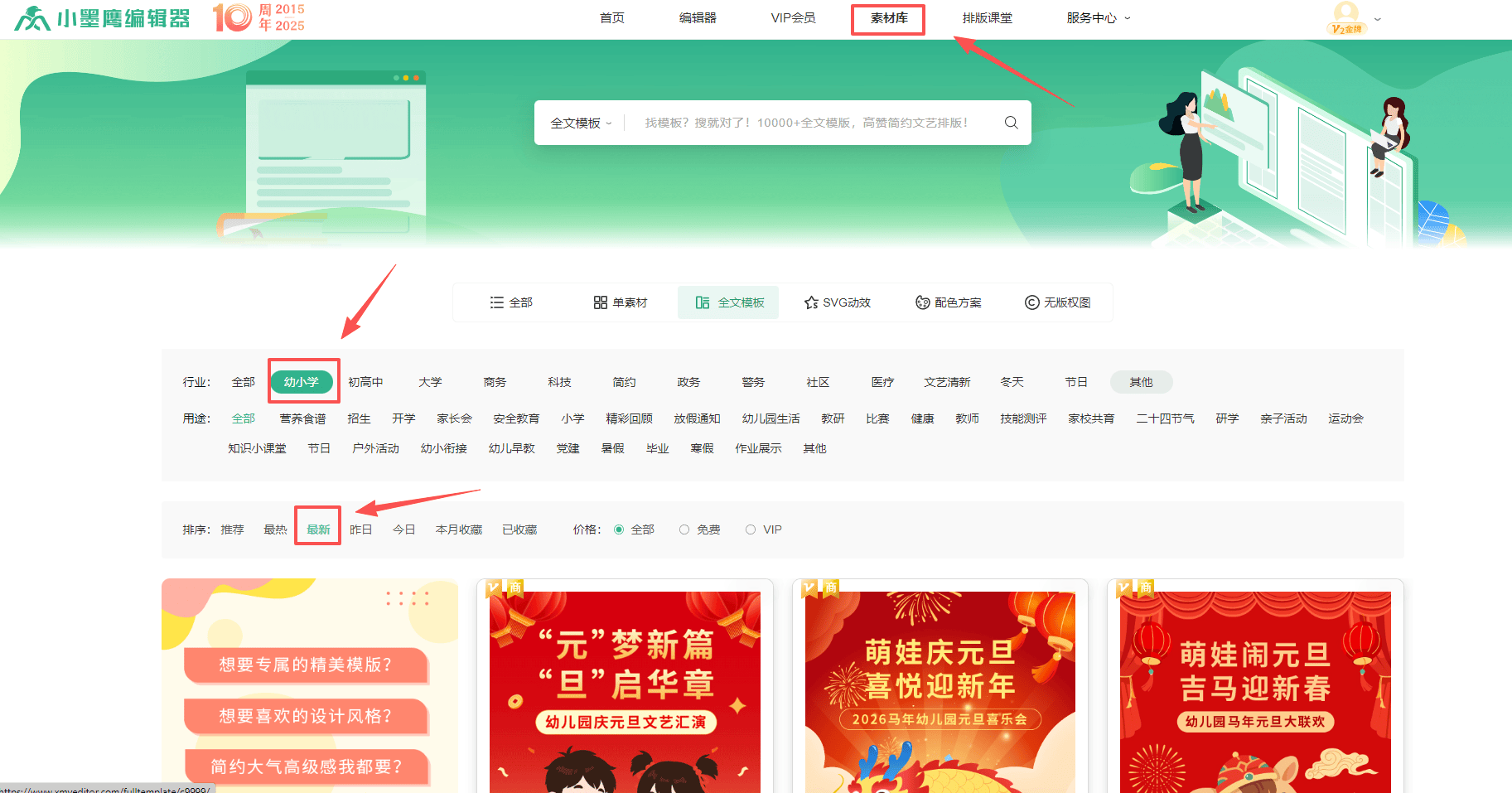 这样一来,系统就会给你呈现:“幼儿园适用的、元旦主题的、最近刚刚上传的”所有模板,效率极高。