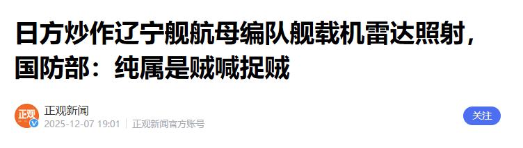 1.《日方炒作辽宁舰航母编队舰载机雷达照射,国防部:纯属是贼喊捉贼》2025-12-07 19:01 | 来源:正观新闻