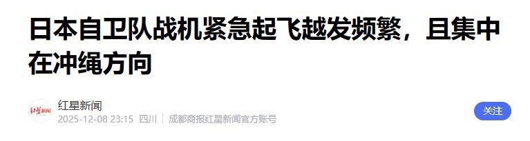 3.《日本自卫队战机紧急起飞越发频繁,且集中在冲绳方向》2025-12-08 23:15 | 来源:红星新闻