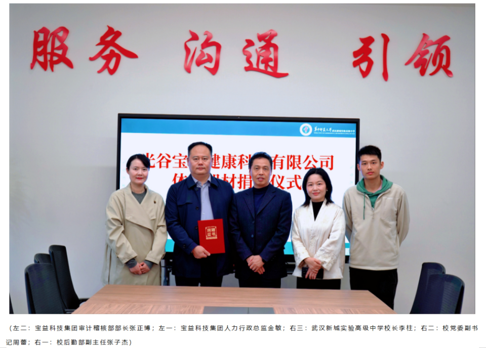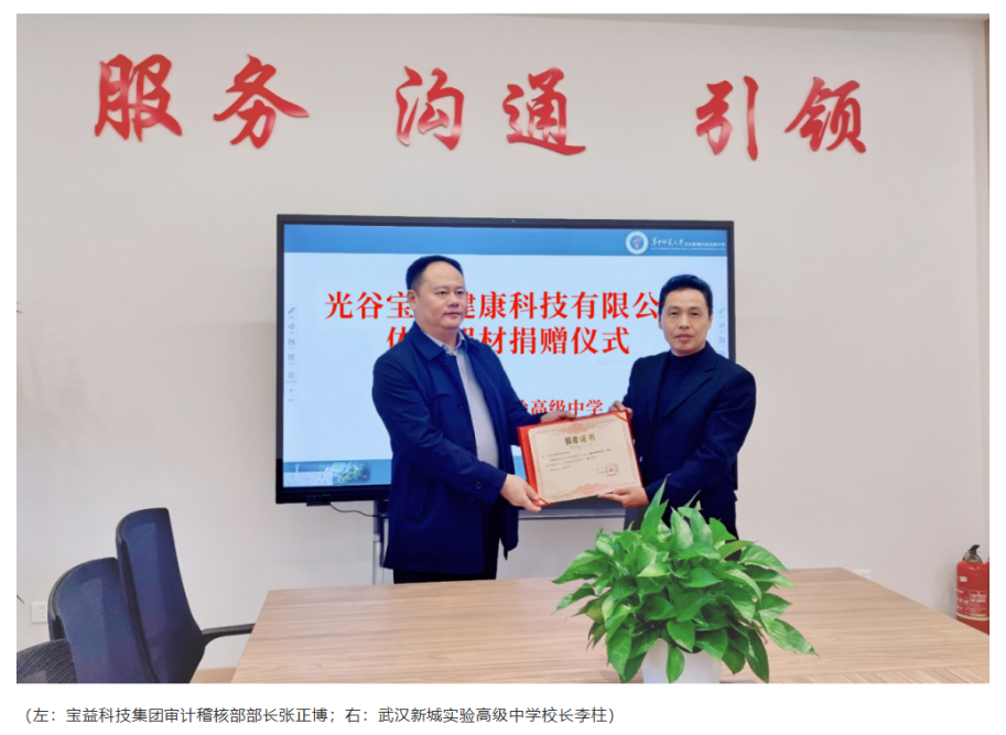 公益之路,行则将至;责任之心,久则弥坚。此次向华中师范大学武汉新城实验高级中学的捐赠,是宝益科技公益事业的又一重要节点。未来,武汉光谷宝益健康科技公司将继续聚焦智慧健康科技领域,探索 “科技+教育” 的创新模式,用更多元化的方式为青少年成长赋能,让爱心的种子在更多心灵中生根发芽。