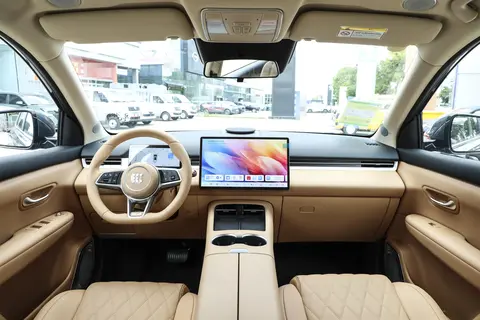 见蓝电 E5 PLUS 实车,我跟老公都愣住了 —— 这车身也太大气了吧!近 4.8 米的长度,比我们之前看的同价位 SUV 明显大一圈,光看外观就觉得 “能装”。我身高 162cm,坐进驾驶座,调整好座椅后,头顶还能空出两拳多的距离,腿也能自然伸直,再也不用像开之前那辆小 SUV 似的,蜷着腿开车,开一个小时就腰酸背痛。老公坐副驾,胳膊搭在扶手上,伸手就能碰到中控屏,一点都不局促。