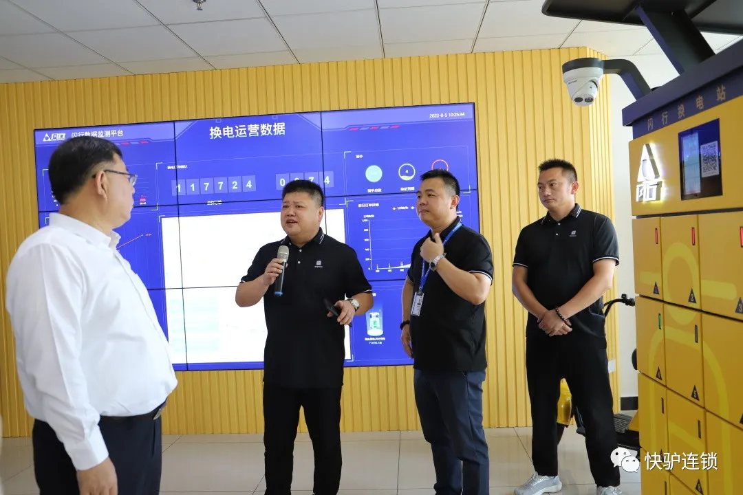 考察团对闪行换电项目做了重点了解。面对目前庞大的电动自行车用户,如何有效地解决用车安全、充电安全、公共充电设施不完善等问题,成为政府的重点工作之一。