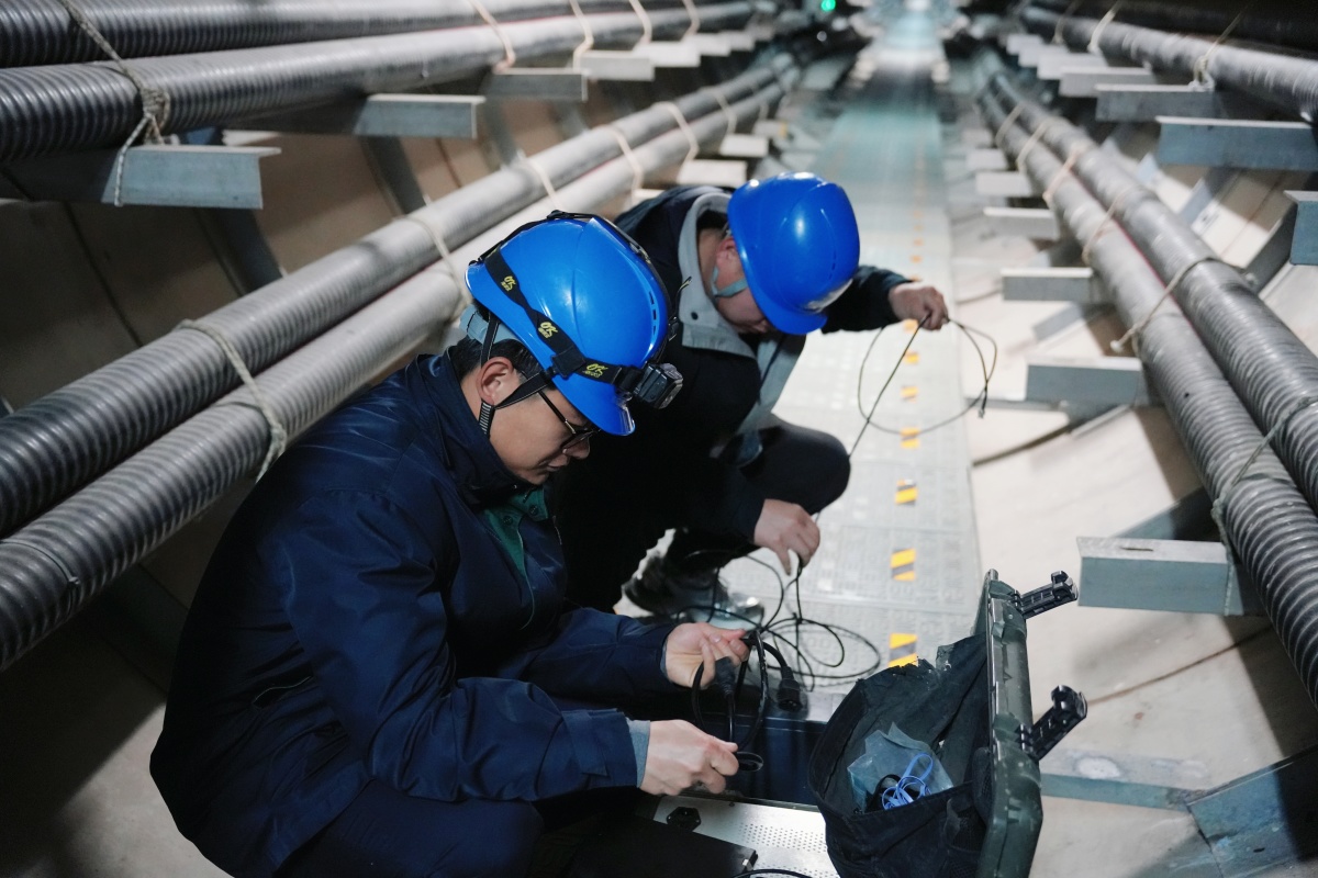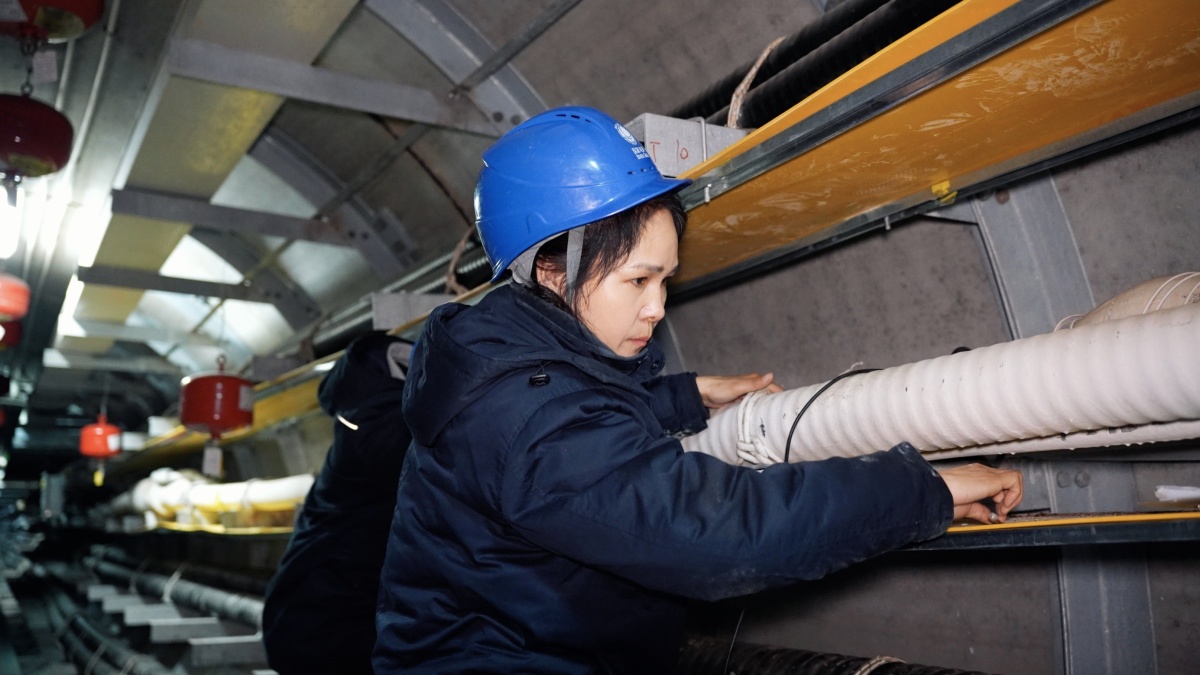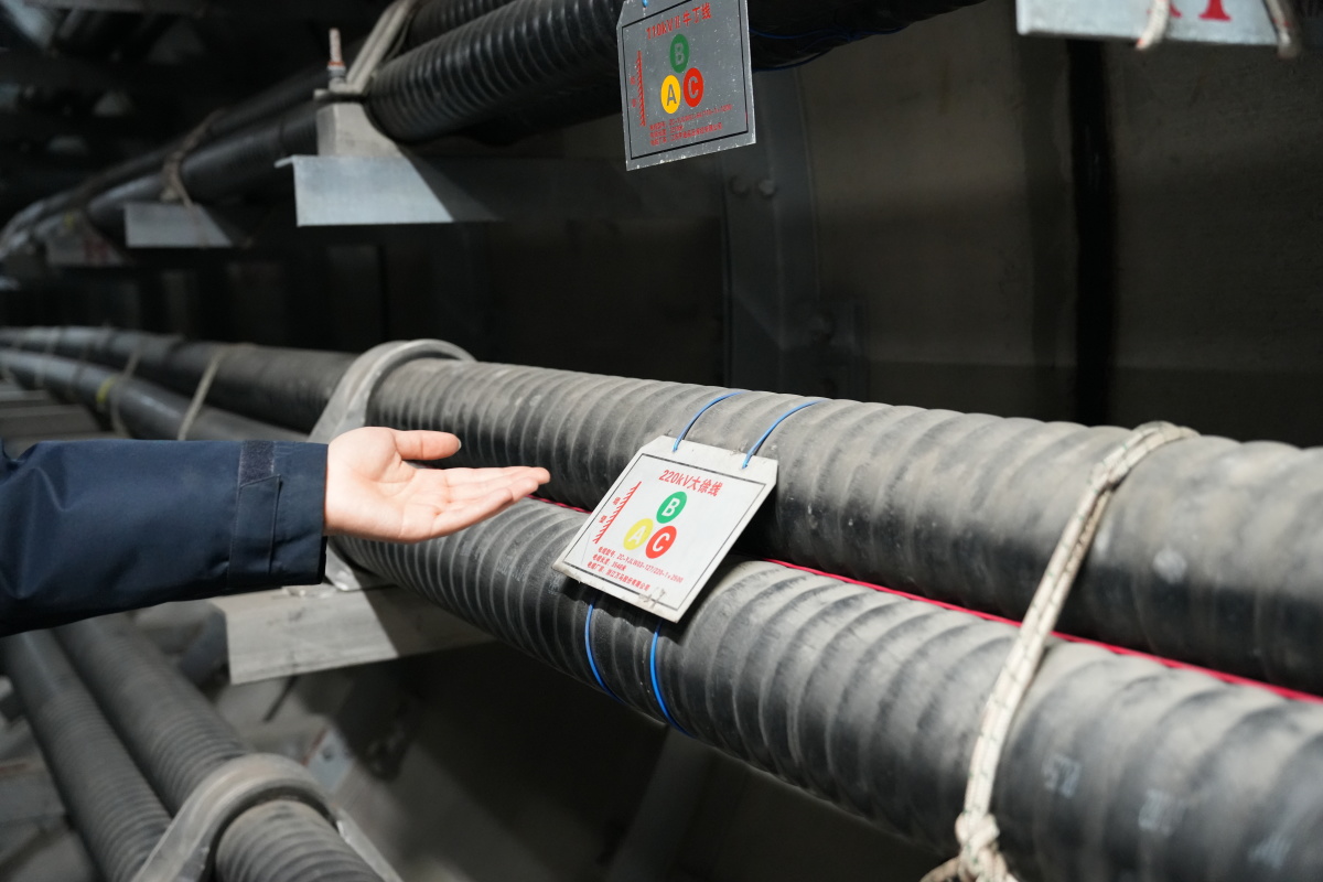 隧道里的科技感藏在细节里。记者注意到电缆表面上伴着一根细线,这是红外测温光纤,数据实时传至工区系统,对应着墙上每隔50米一个的米标,精准定位每个点位的温度,“K3加205,这个米标对应的温度数据,在办公室里能实时看到,一点偏差都能及时发现。”