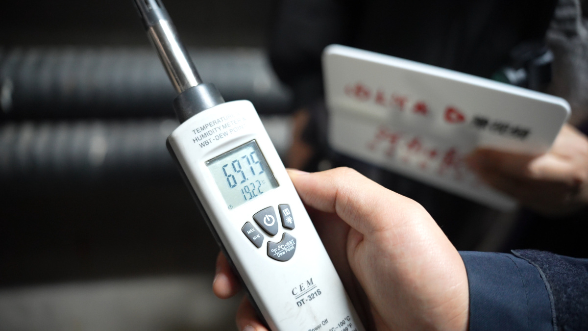 在隧道里走了20多分钟,记者已浑身是汗。陈永清拿出检测仪,屏幕上的数字令人咋舌:温度19.2℃,湿度80%。“隧道里常年冬暖夏凉。我们现在待的是将近20米深的隧道,平时巡检最深的隧道,在40米的地下。”陈永清说。