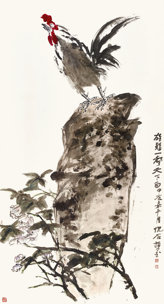 图1 吴悦石《雄鸡一声天下白》 纸本设色