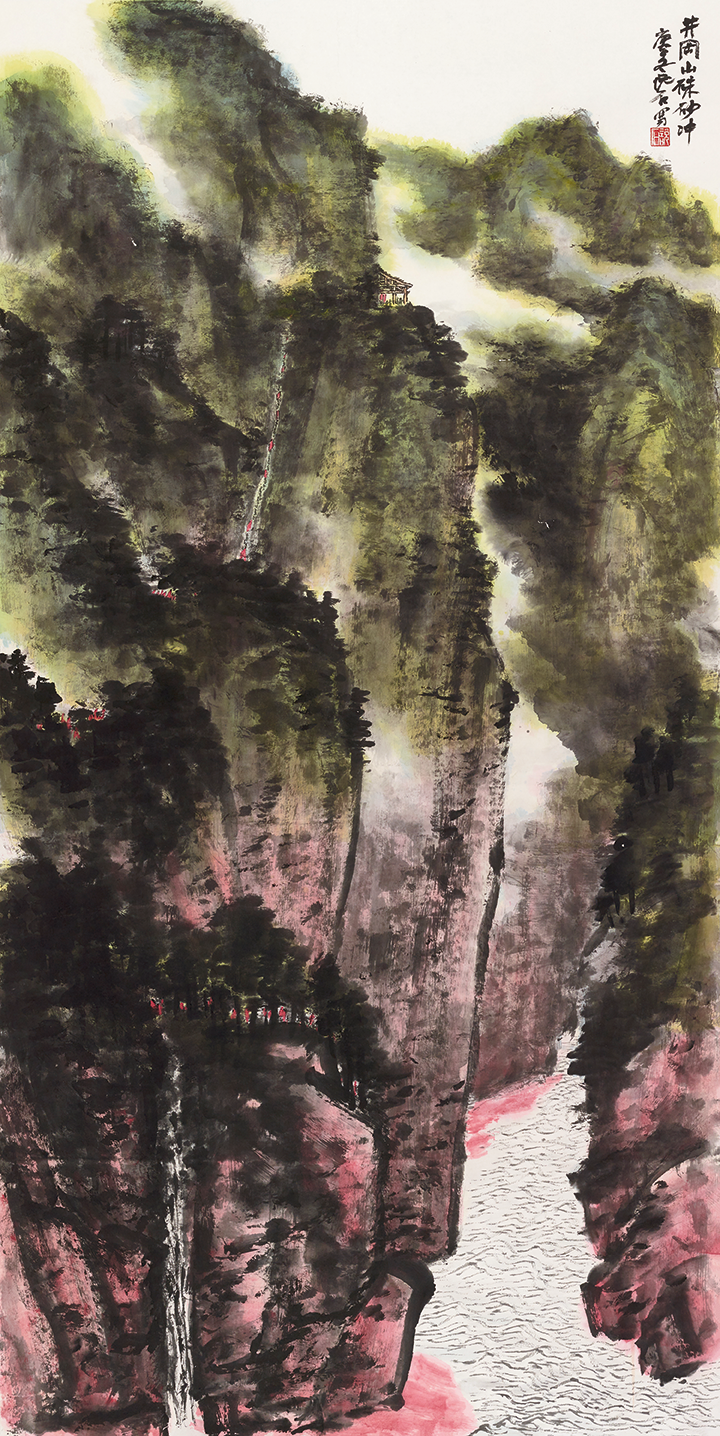 图4 吴悦石《井冈山硃砂冲》 纸本设色
