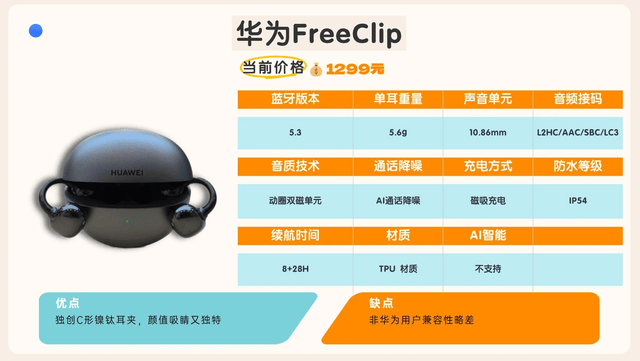 整体来看,华为FreeClip是一款设计极具巧思的耳夹式耳机,其佩戴舒适度和生态联动体验是其核心优势,非常适合华为手机用户作为日常辅助耳机,用于通话和资讯收听。但其在音质表现上的局限性也显而易见。