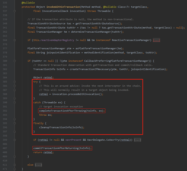 另外,我不得不多说一句 Spring 在事务这块的源码写的非常的清晰易懂,看起来基本上没有什么障碍。