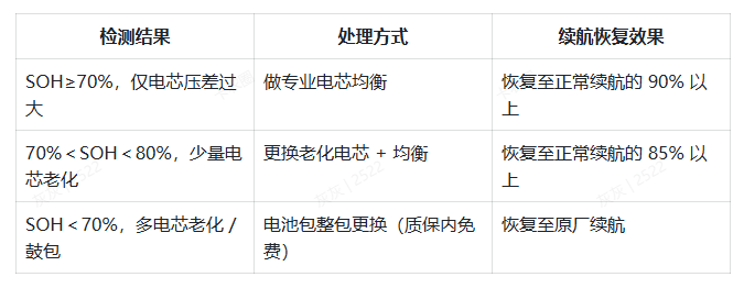 核心:到专业机构做电池包全检,获取权威检测报告,针对性修复 / 更换,解决根本性续航缩水问题