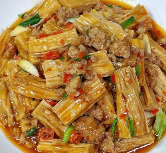 盛一碗热米饭,舀几勺肉沫腐豆浇上去,汤汁渗进米粒里,咸香微辣,肉沫酥香,腐竹软韧有嚼头。这道菜不金贵,也没什么讲究,就是重庆人家里最寻常的味道。日子再忙,灶上有这样一锅,一家人围在一起,筷子动得勤快,话也说得多些。