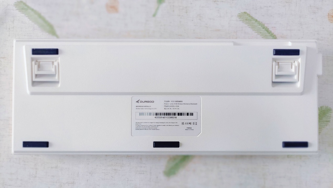 底壳分为上下两阶,四角以及中下方都有脚垫,用来提高键盘避免日常摩擦带来的划痕。