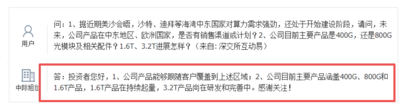 1.6T光模块量产能力:公司在11月23日的互动平台上表示,公司目前主要产品涵盖400G、800G和1.6T产品,1.6T产品在持续起量,3.2T产品尚在研发和完善中。将充分受益于1.6T光模块需求10倍增长放量后带来的新增量。