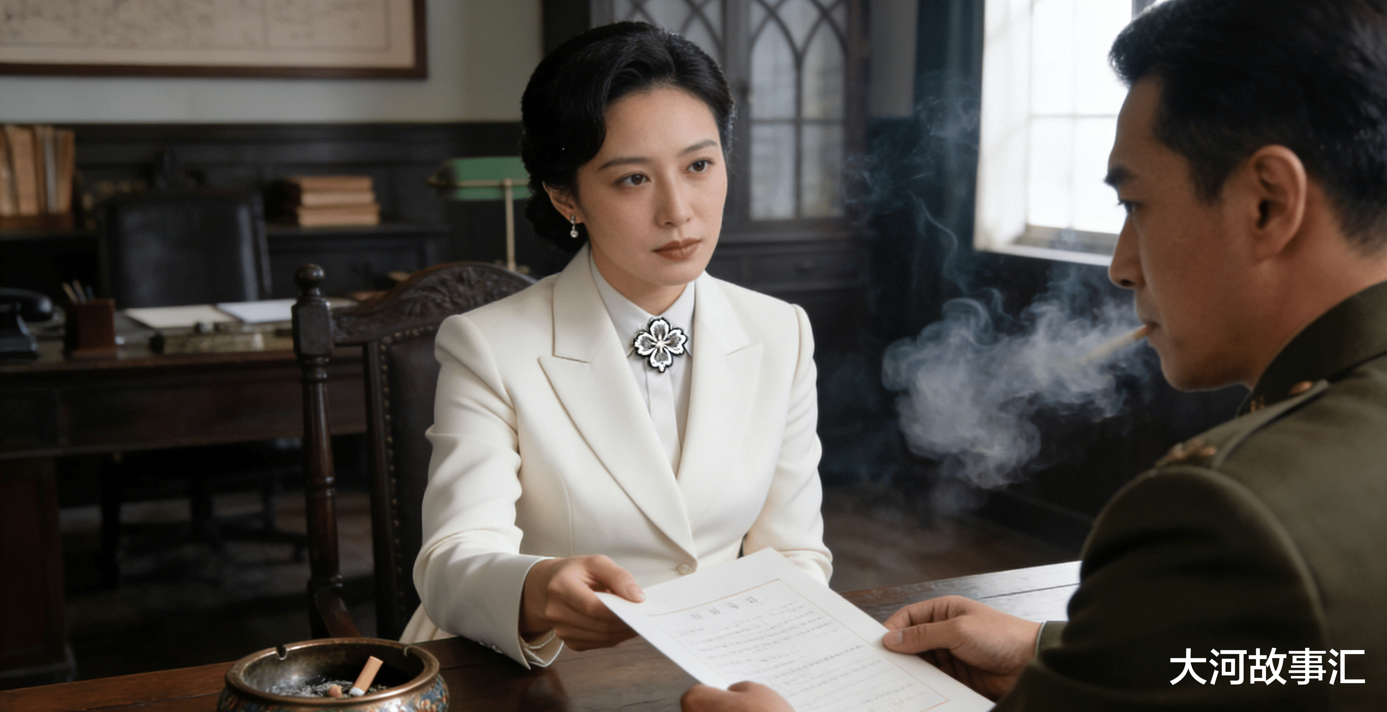 就在这时,办公室的侧门悄然打开,一个穿着墨绿旗袍的年轻女子端着托盘走进来,盘上是几杯热茶。