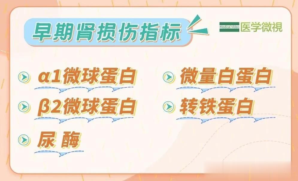 近几年,“早期肾损伤指标”越来越受重视,主要通过查尿就能检测,大家可以重点关注这几个:α1-微球蛋白、β2-微球蛋白、NAG酶(尿酶),还有微量白蛋白、转铁蛋白。这几个指标,是反映肾脏早期损伤的“信号灯”,比常规指标更灵敏。