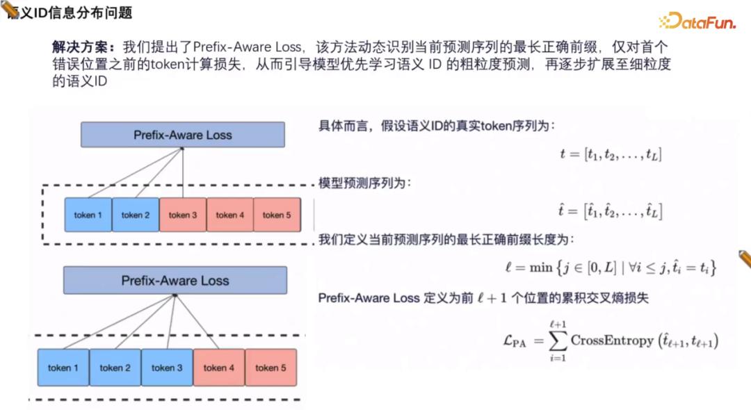 (3)语义 ID 信息分布问题:引入前缀感知损失(Prefix-Aware Loss)