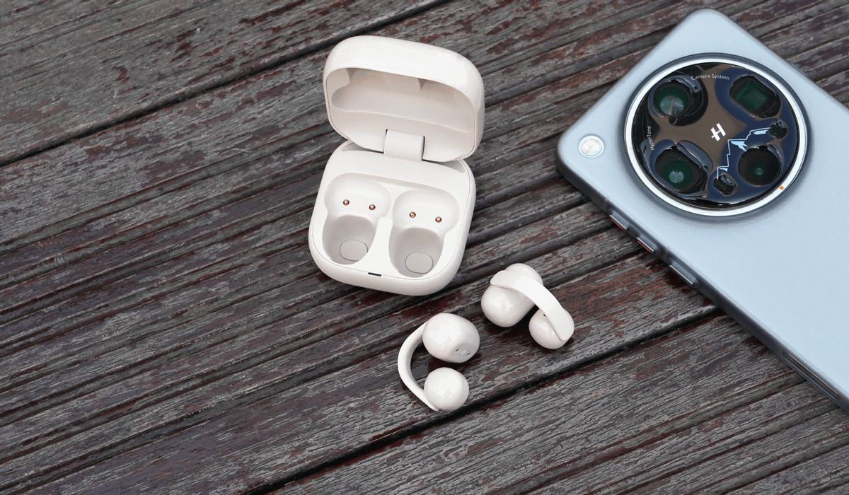 开放式耳机主打长时间佩戴,人体工学很重要。尽量选单耳10g 以内的轻量化款式,贴合耳廓、稳固不压耳,液态硅胶这类亲肤材质佩戴更舒服。