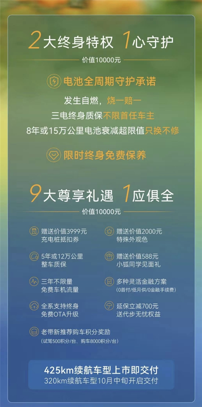 极狐T1上市,售价6.28万元起,共推出五个版型,精准满足A0级纯电市场需求。作为“家庭精品纯电新标杆”,其迅速引发广泛关注。上市当天,12小时大定订单突破26558台,彰显消费者高度认可。品牌方提供三电终身质保、电池自燃烧一赔一等购车福利,并支持425公里续航版本即时交付,满足用户多样化需求。