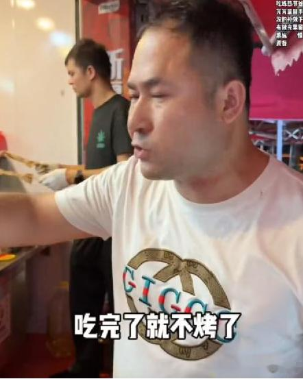 好似那些被他吃过的烧烤都是“假象”一样,此刻的老板已经有点不对劲了,但是碍于镜头他只能强颜欢笑。