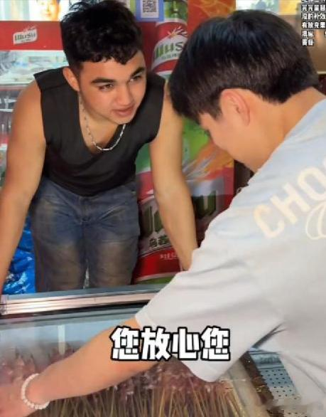 在内心的吸引下,他决定来新疆旅游,来到新疆的他十分想尝试新疆夜市,于是他就来到了新疆当地的夜市烧烤摊。