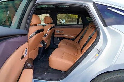 汉L EV的车身长宽高分别为5050x1960x1505mm,轴距为2970mm,第二排的乘坐空间表现要比阿维塔 12稍显局促一些,但是也能够保障乘坐舒适性,同样以身高180cm的成年人为例,腿部还有2拳出头的富余,座椅宽大厚实,采用的是真皮的材质,坐垫进行了加长的处理,对于乘客腿部的支撑性给的很足,另外,舒适性功能也十分全面,前排座椅均支持电动调节、座椅加热、通风、记忆和按摩等功能,第二排座椅也配备了加热、通风和按摩功能,对于长途乘坐时可以减轻一定的疲劳感。行李舱的内部空间较为平整,后排座椅是不支持放倒功能的,能够满足日常的家用载物需求。