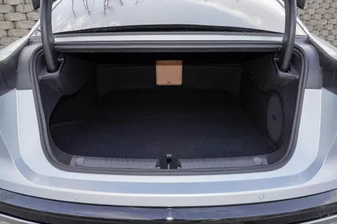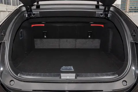 车辆尾部是其设计亮点之一,采用了溜背且掀背的设计,并且没有配备后舷窗,这样的设计非常大胆,对于部分消费者们需要一定时间适应,尾箱盖上配备了帆式的电动扰流板,升起时可以增加一些下压力,尾灯并未采用当下流行的贯穿式设计,而是采用两侧细长平行的设计,点亮后具有一定的辨识度。