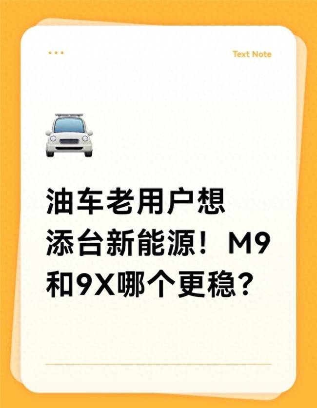油车老用户想添台新能源!M9和9X哪个更稳?