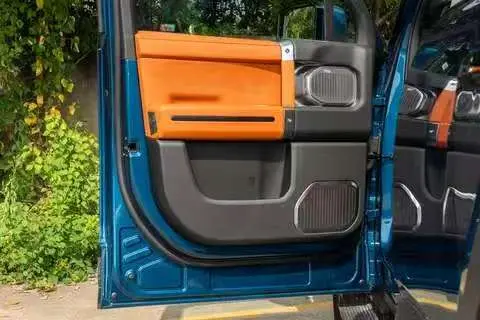细节设计上,前脸造型具备较高辨识度,独特灯组与格栅的搭配营造出沉稳气场,车身侧面平直腰线贯穿首尾,车尾背负式全尺寸备胎保留了硬派越野的经典元素,垂直布局的尾灯则注入现代设计感。有体验者表示,此前通过图片观察时对前脸LOGO与横杠的搭配存在疑虑,但见到实车后发现整体比例十分协调,这种"又方又猛"的视觉感受,恰是硬派SUV爱好者所青睐的风格。
