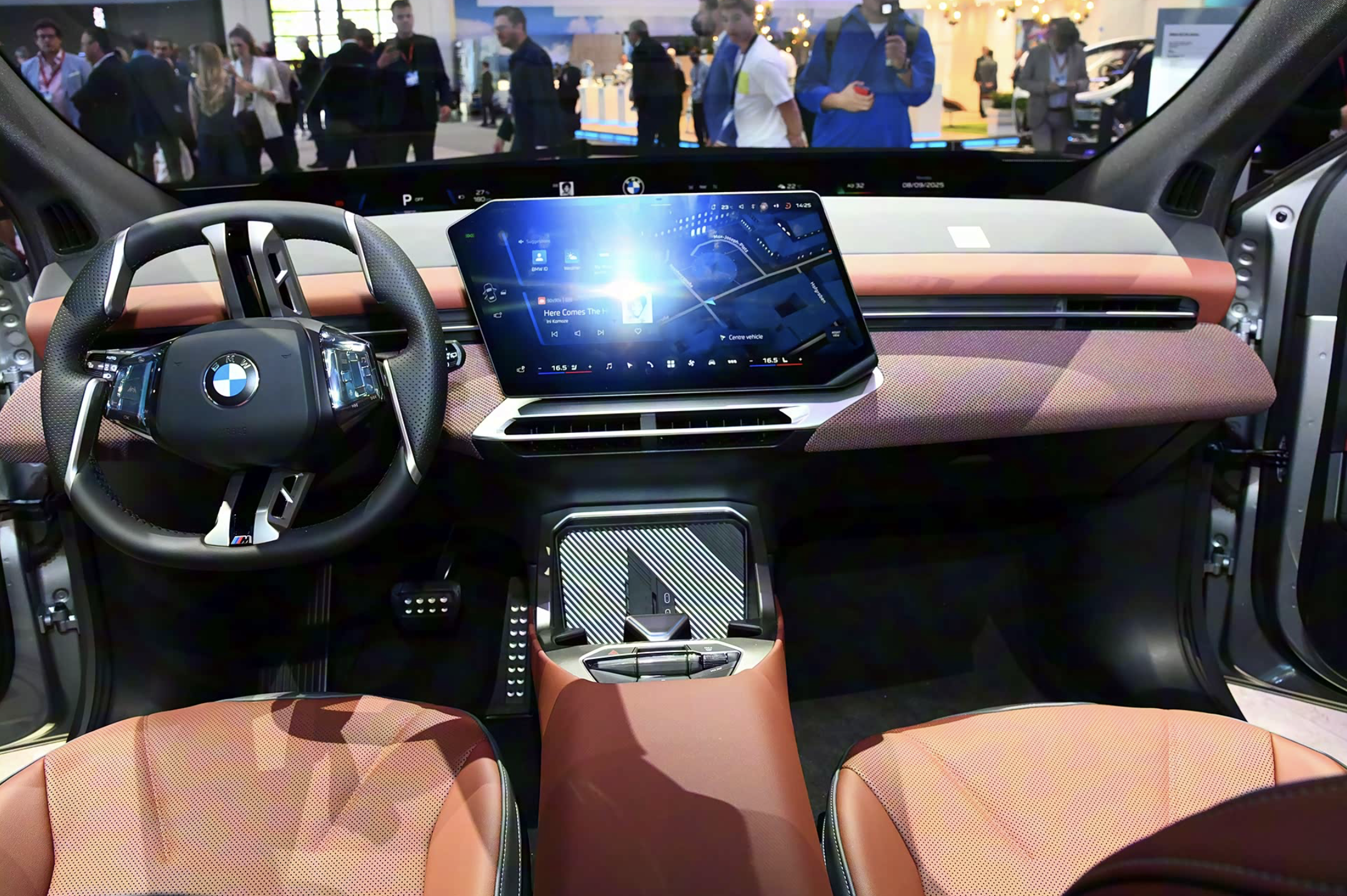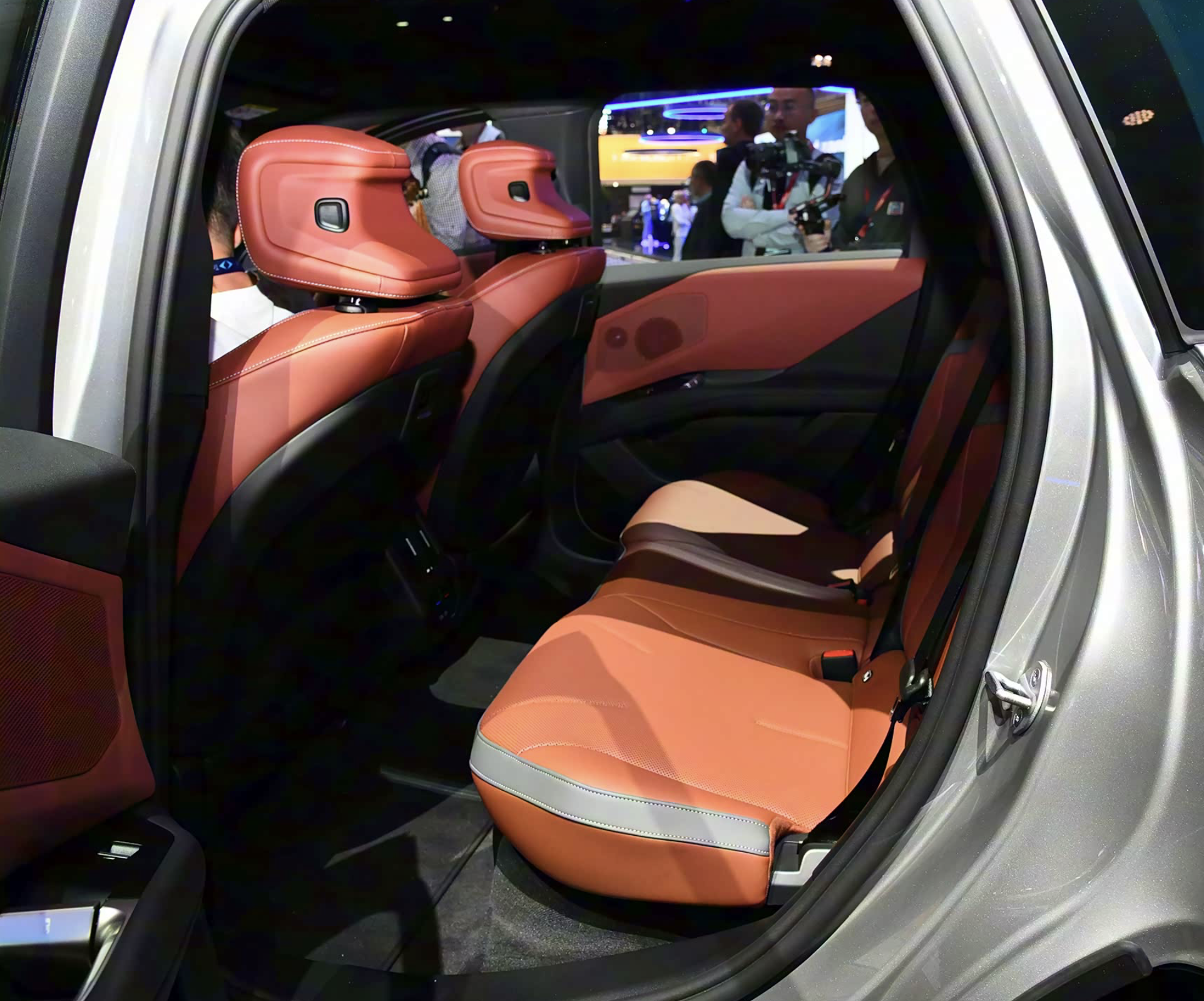 宝马IX3的座舱内部也十分科幻,采用了大面积Alcantara面料包裹,浅灰色和浅棕色的交替搭配,再加上蓝色的安全带,十分柔软细腻。中控台配备了12.3英寸全液晶仪表盘和14.9英寸悬浮式中控屏,按键数量减少约50%,科技感和运动感丝毫不差。六角形的方向盘搭配着换挡拨片,再加上精致小巧的换挡拨片,操控岛区域也变得更加简约,配备了无线充电模块的面板,后方还保留了大颗粒的物理按键,全新的换挡机构也带来了全新的体验,相信它的操控感受也一样不会差。配备了3D打印的桶装赛车座椅,支持座椅加热、通风、按摩功能。