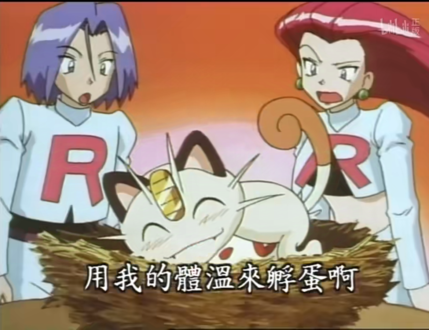 火箭队听到小智身边有一颗没有孵化出来的神奇宝贝蛋,两人一喵默契一笑。