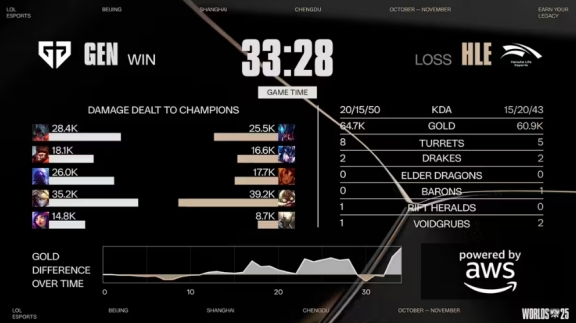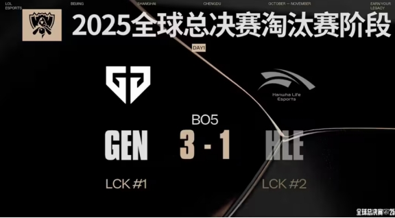 2025年,英雄联盟全球总决赛(S15)淘汰赛首场比赛可谓是精彩纷呈。实力排名前二的LCK队伍GEN与HLE展开了一场巅峰对决,这场比赛从一开始就充满了火药味,吸引了众多电竞爱好者的关注。