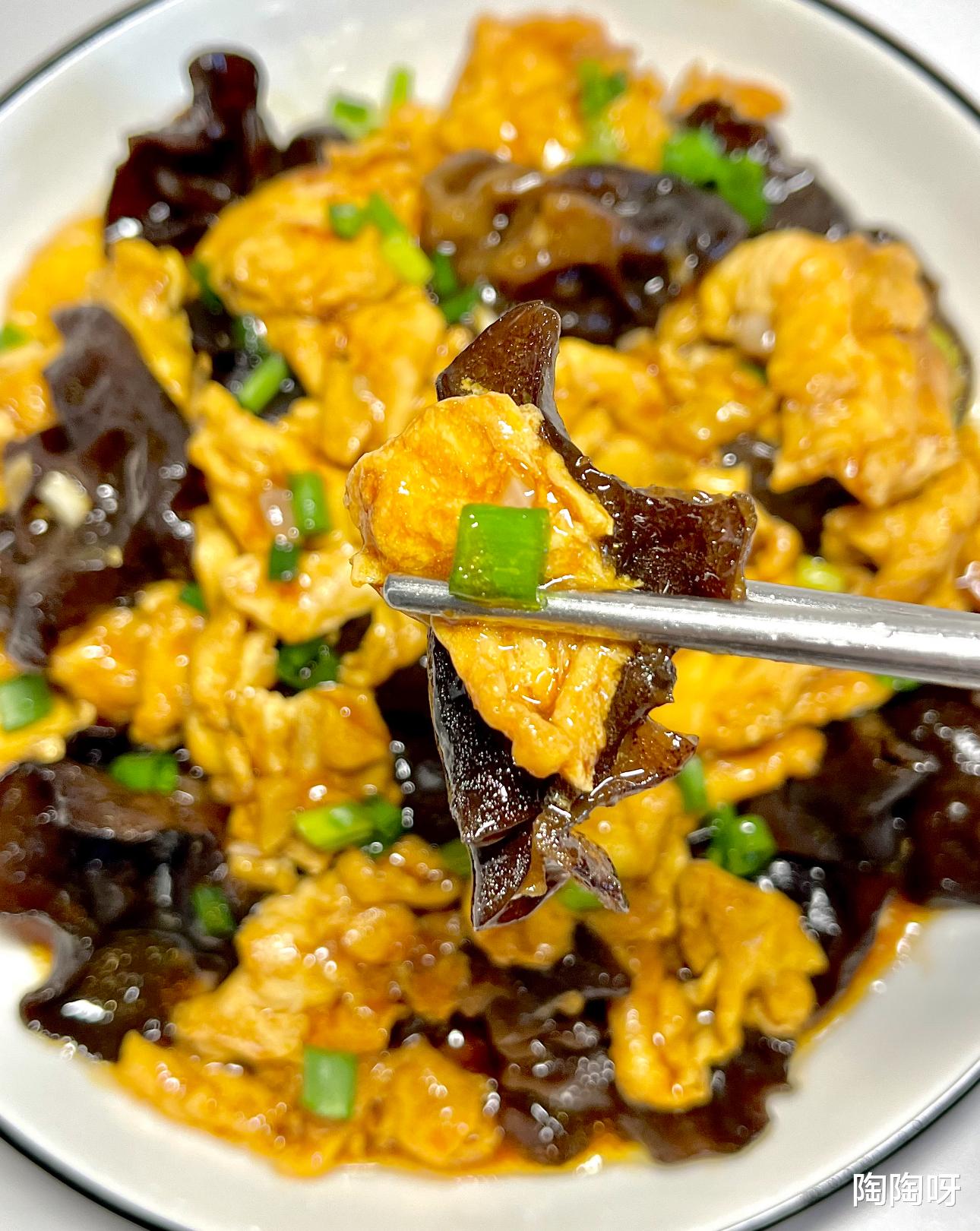脆嫩的木耳配上嫩滑的鸡蛋,裹着咸鲜微甜的汤汁,拌上一碗刚焖好的热米饭,那滋味,简直了!快去试试吧!