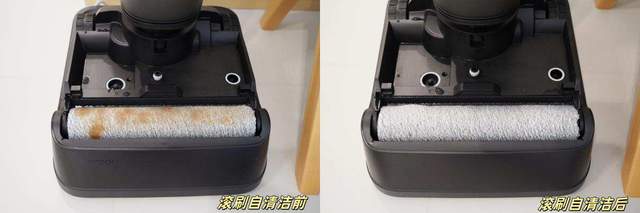 更智能的是,它还搭载了智能脏污检测系统,能自动识别滚刷脏污程度,智能切换普通清洁或深度清洁模式,无需手动干预。小伙伴们可以看一下,滚刷自清洁前后的对比,短短几分钟,滚刷便焕然如新,甚至比我们手洗得还要干净。