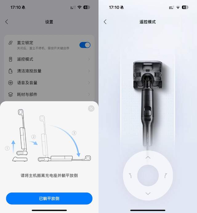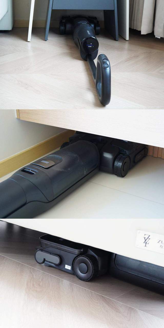 像我家沙发底、电视柜下、床底下、梳妆凳下,它都能自由进出。并且在躺平清洁时依旧保持着稳定、高效的清洁能力。