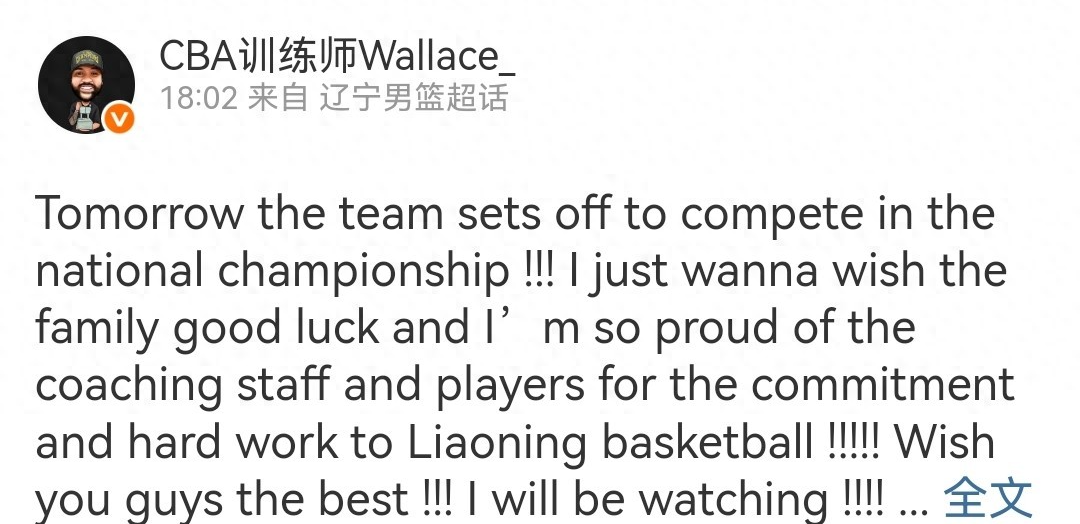 根据辽宁男篮训练师Wallace 发布的消息来看,辽宁全运会男篮11月1日将会启程前往广东的东莞,在那里参加第十五届全运会男篮成年组决赛阶段的比赛。