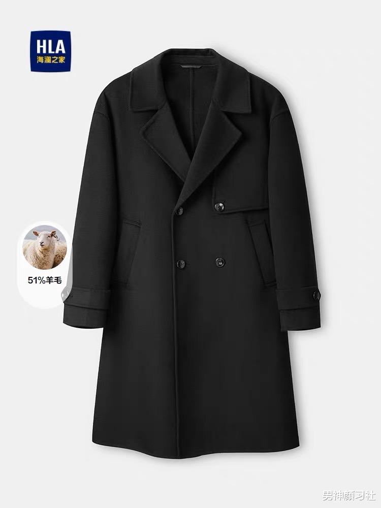 黑色大衣除了基础款,其实还有细分风格。双排扣大衣穿上真的很有男人味,尤其适合身高175以上、肩膀稍微宽一点的男生。站着的时候特别帅,走路自带风。
