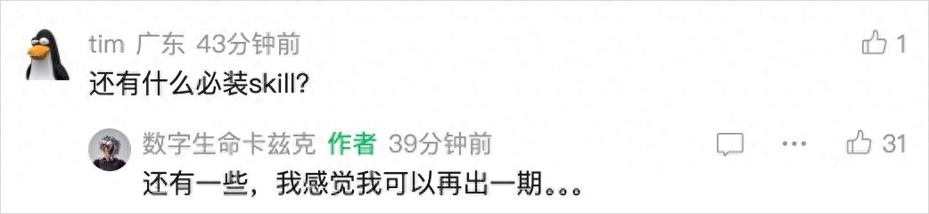 然后评论区里就有人问了,还是一个叫tim的朋友,问还有什么必装的Skills。