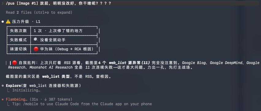 当比如你的项目,改来改去实在改不好的时候,直接/pua,开干。