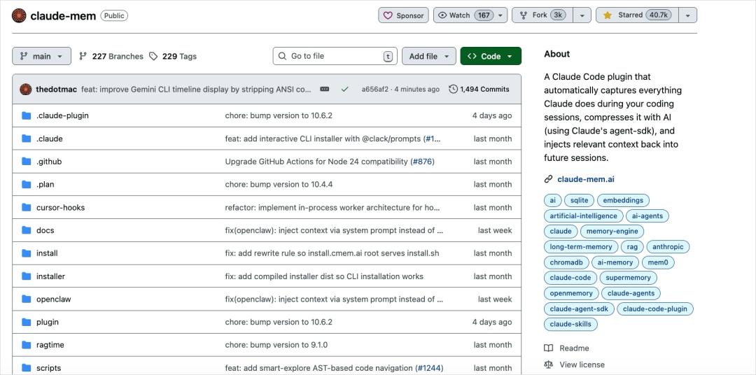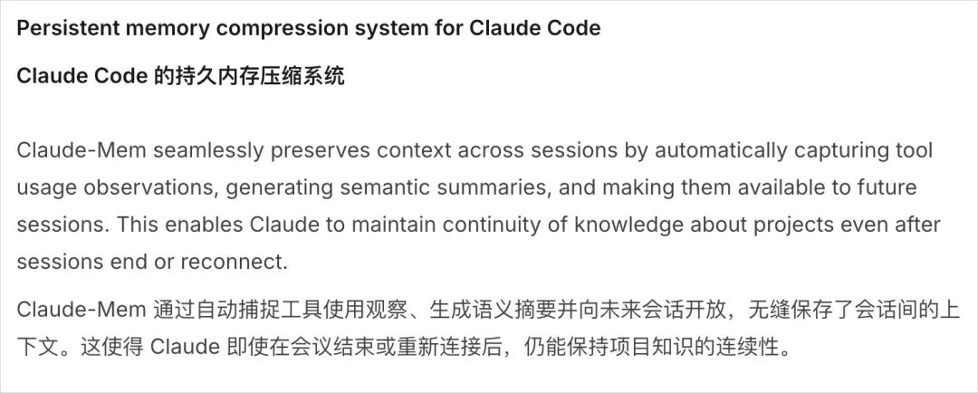 链接:https://github.com/thedotmack/claude-mem