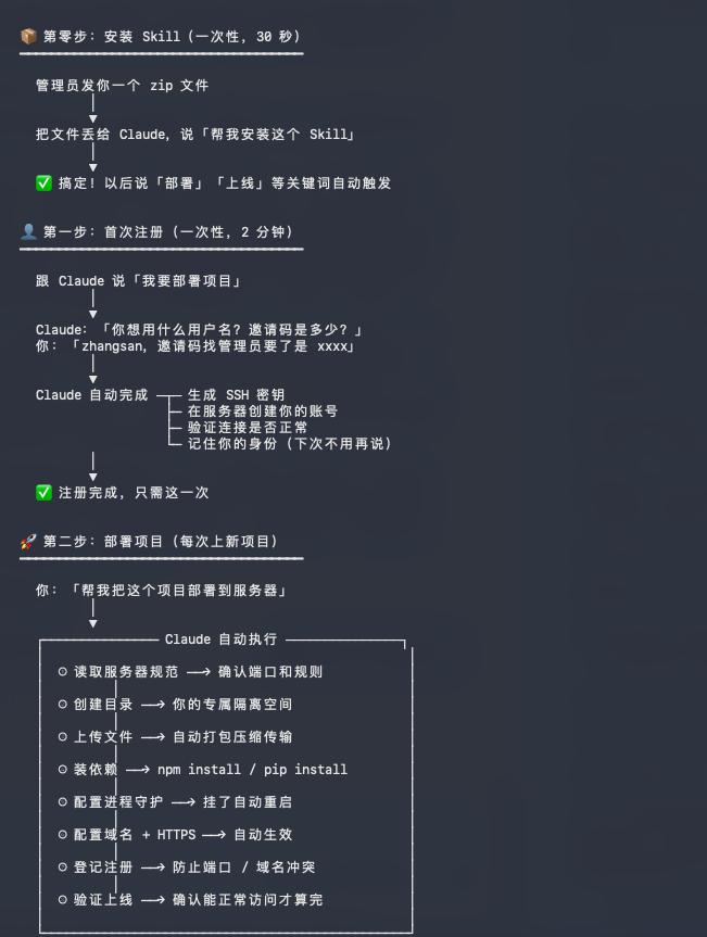 现在这个服务器管理Skill,就是我们的必装Skill,真的,要不然一群人,真的搞不明白服务器运维,而且我们都是非常个人化的小项目,搞得很复杂也没必要。