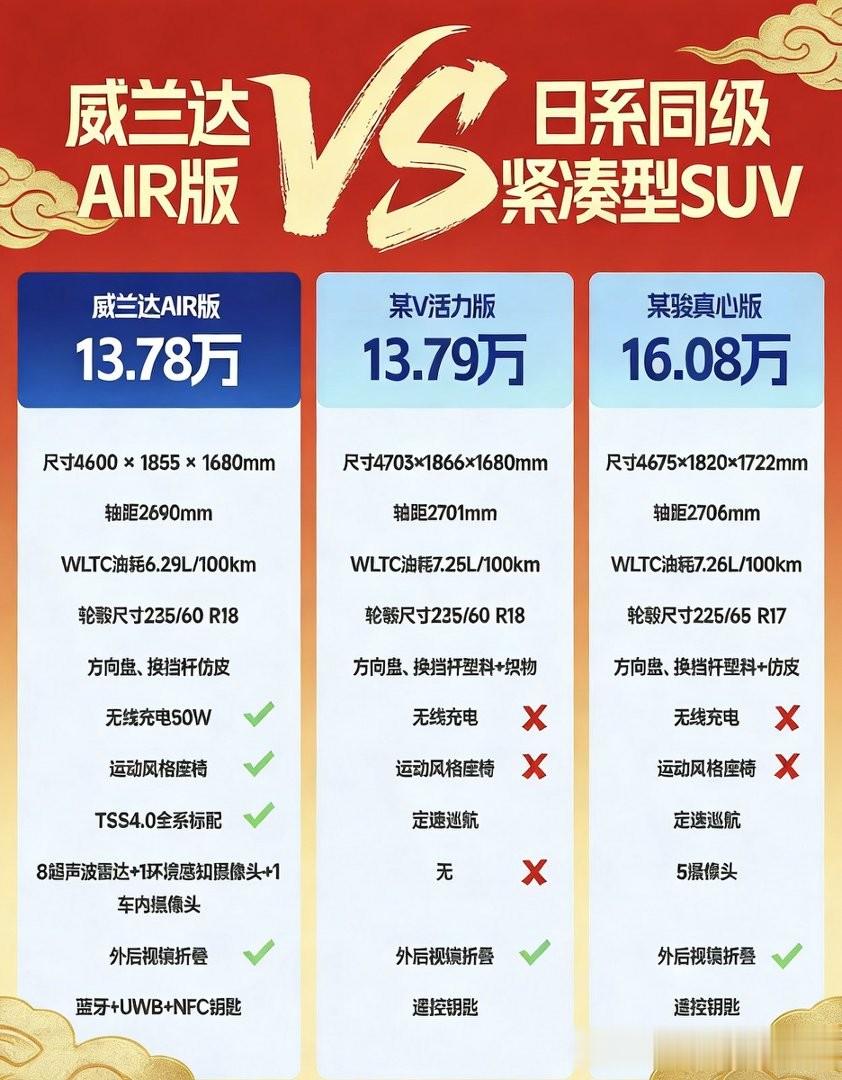如今家用SUV市场越卷越凶,可真正能做到不减配、不套路、够省心、真省钱的车型,其实少之又少。很多车看着便宜,一坐进车内就露怯;有的配置够高,后期养车又让人头疼。而刚上市的威兰达AIR版,完全跳出了这种尴尬局面,凭借全域进化的产品力与实打实的用户福利,直接成为15万级合资中型SUV里的标杆之选。
