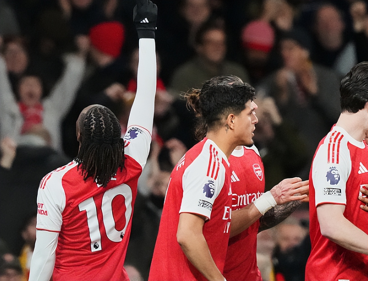 目前的领头羊是阿森纳,本轮他们在北伦敦德比中又笑纳三分,主场4-1大胜热刺,埃泽闪耀全场,上演了帽子戏法,特罗萨德也取得了一粒进球,帮助热刺打进挽回颜面一球的是里沙里松,后者精彩远程吊射。枪手目前的积分上涨到29分,已经领先了身后的对手6分以上,在曼城、利物浦等队连续输球的情况下,枪手扩大了领先优势,冲击冠军正在变为现实。