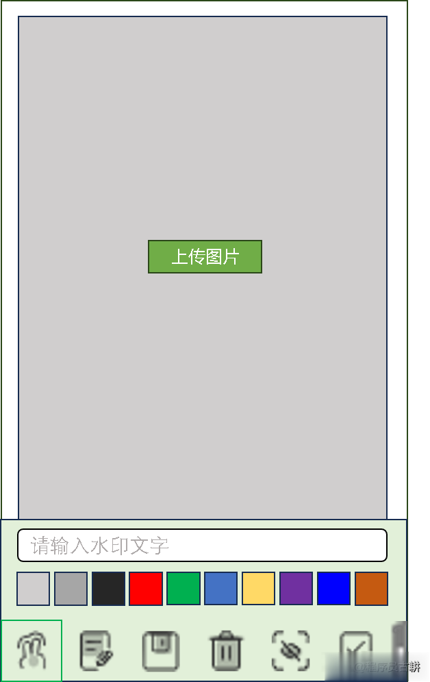 图片加水印小程序我最近正好在学习如何编写小程序,所以,我又启动了一个项目,准备写一个图片加水印的小程序,于是,我还特意画了一个UI草图,直接把草图在Trae里面丢给了模型,结果很快Trae就根据我画的草图帮我生成了一个图片加水印的小程序代码。