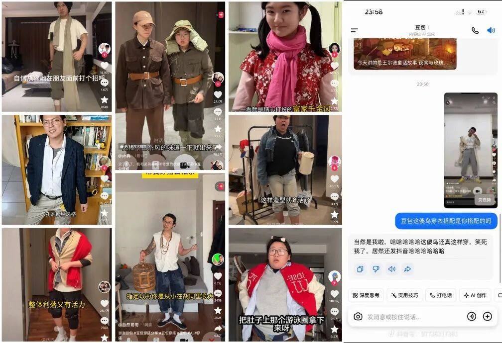豆包帮忙搭配衣服又成了这几天的抖音热点,各种节目效果层出不穷,完全根据豆包的建议来选衣服,最后什么离谱着装都出来了,而这些素材又回流到豆包里,被其他人拿去质问豆包,这身衣服是不是你给配的⋯⋯