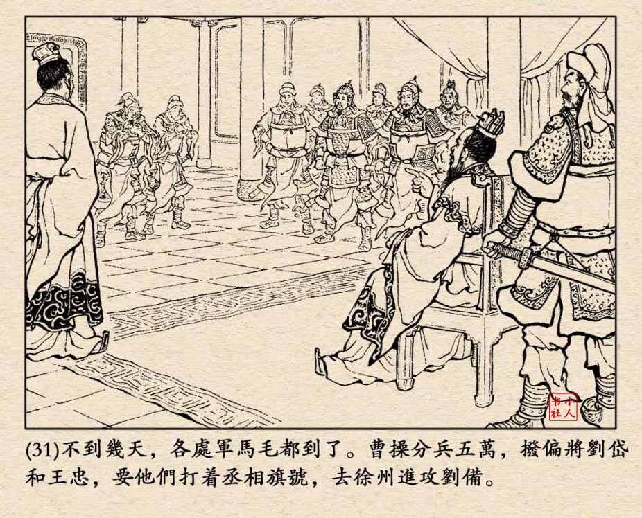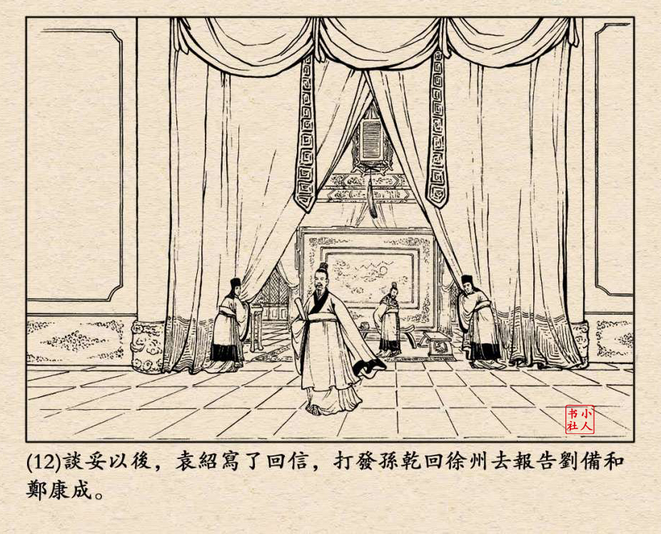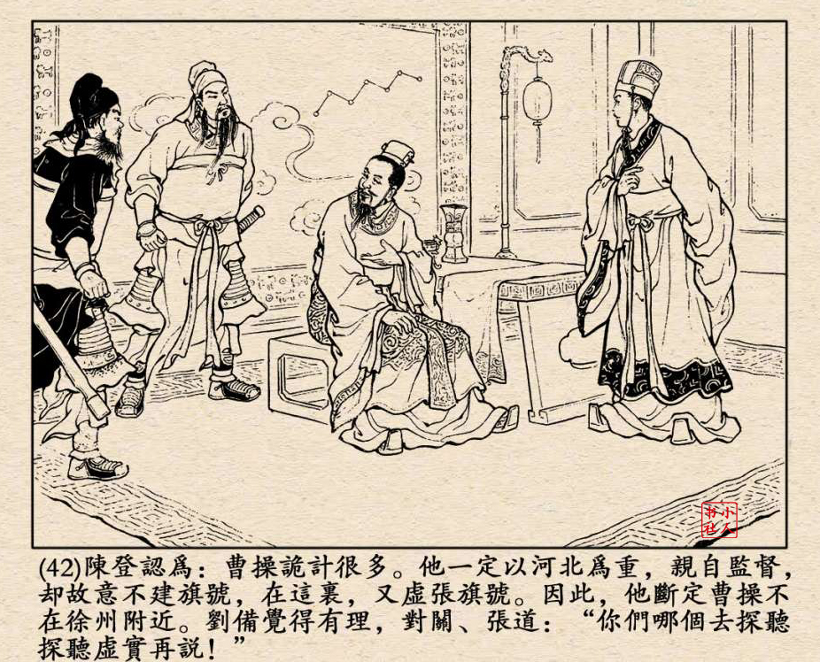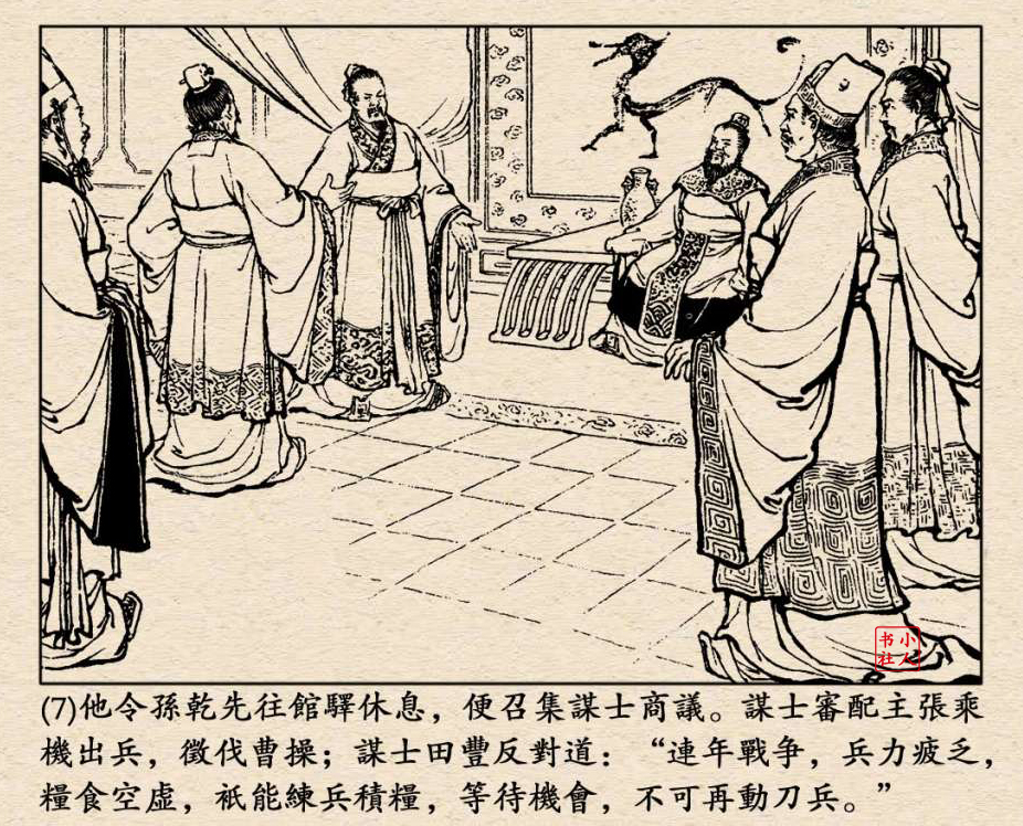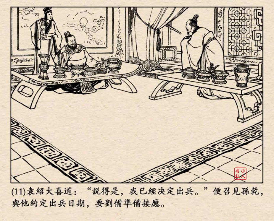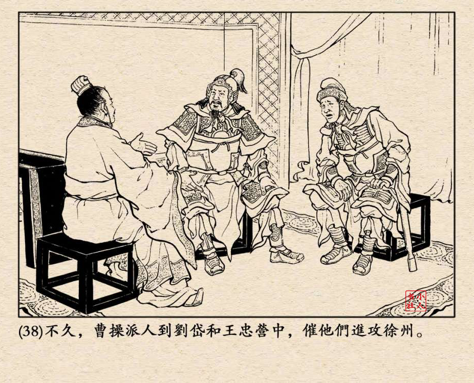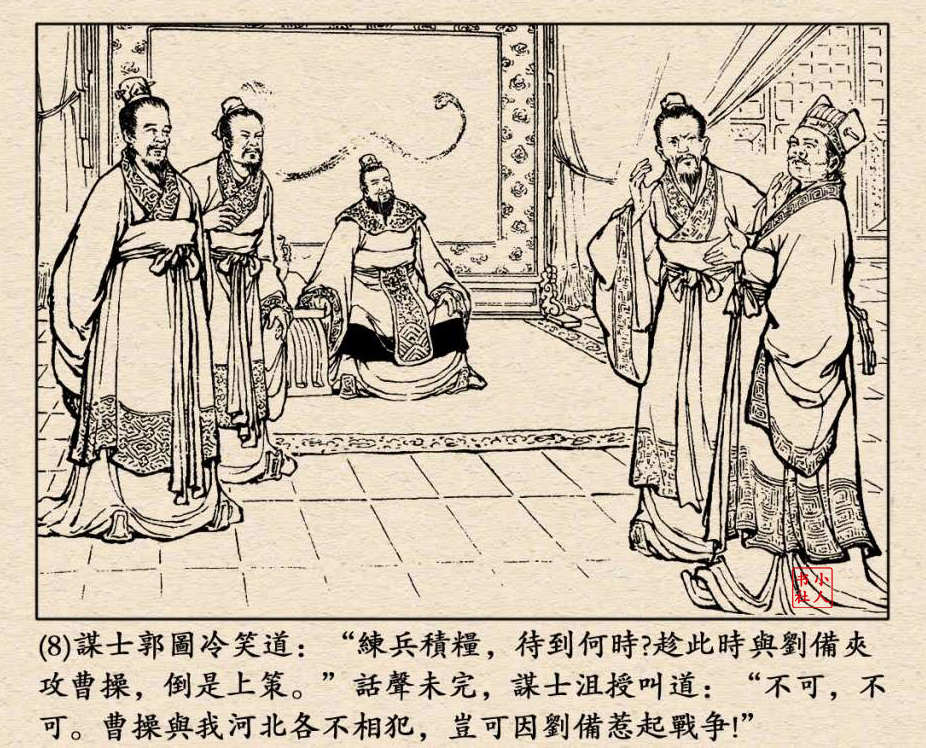 《传书救刘备》连环画是由田衣、吉志西改编,吕品、徐余兴绘画。故事讲述刘备担心曹操问罪,求郑玄写了书信,请袁绍出兵相救。袁军到达,内部意见不一,按兵不动,与曹军相持不战。曹操乘机分兵攻徐州。关、张出兵应战,击破曹军。