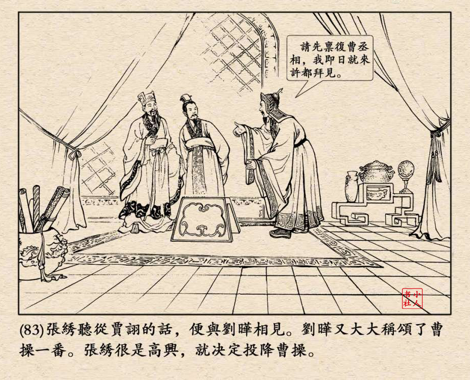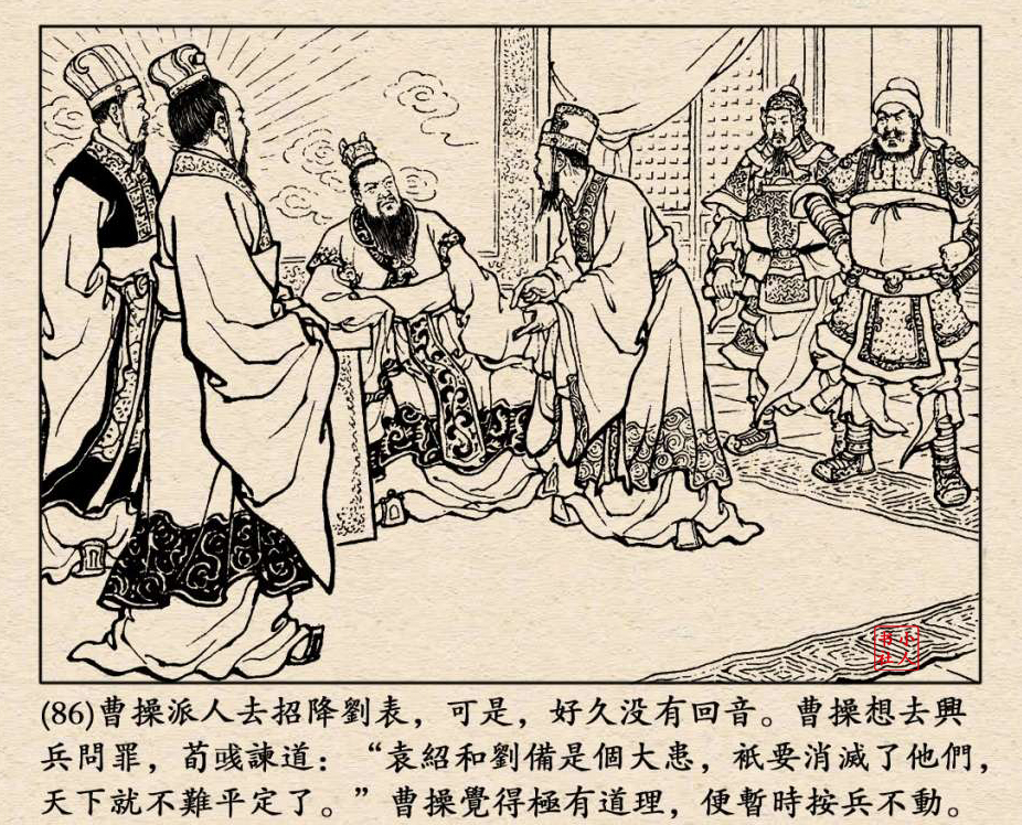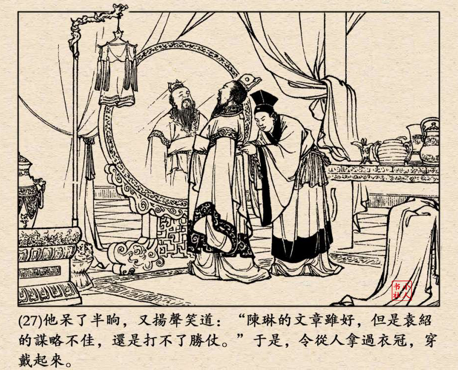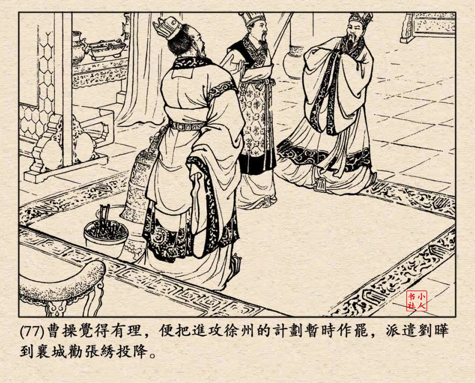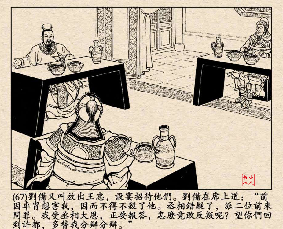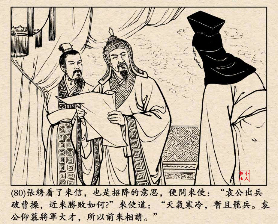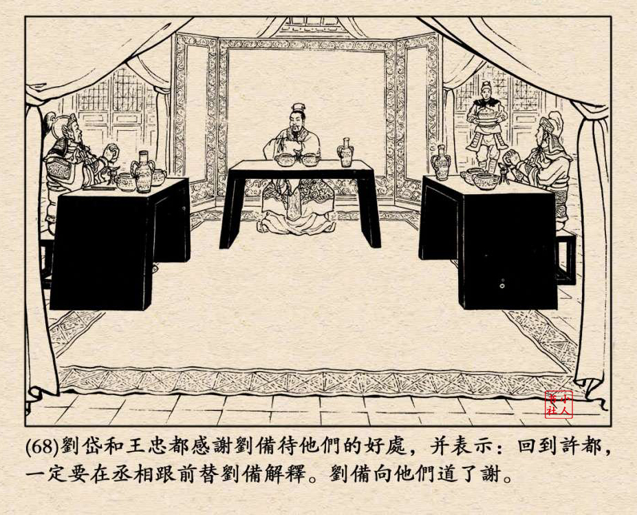 《传书救刘备》连环画是由田衣、吉志西改编,吕品、徐余兴绘画。故事讲述刘备担心曹操问罪,求郑玄写了书信,请袁绍出兵相救。袁军到达,内部意见不一,按兵不动,与曹军相持不战。曹操乘机分兵攻徐州。关、张出兵应战,击破曹军。