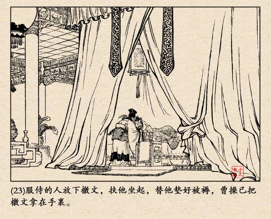 吕品的连环画延续了传统线描写实风格,注重人物神态刻画与情节推进的连贯性,线条流畅,构图严谨,画面富有叙事张力。其作品不仅服务于大众阅读,也承载了特定时代的生活图景与人文关怀,如《杨柳街》中对底层农民生存状态的真实描绘,使作品具有超越故事本身的社会观察价值。