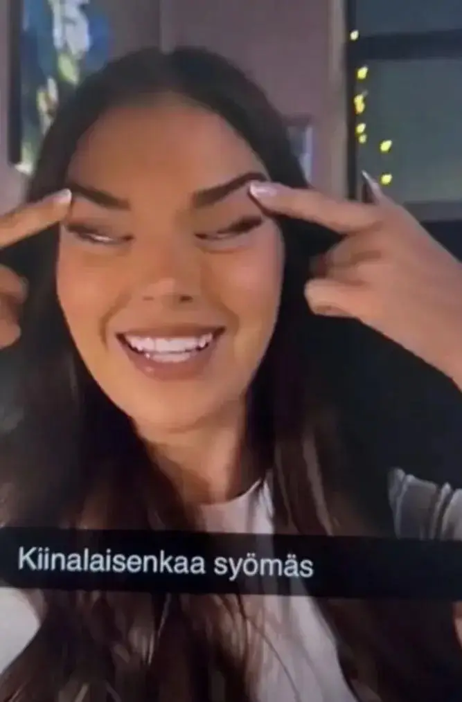 2025年环球小姐赛事刚落幕,芬兰冠军SarahDzafce(莎拉・扎夫采)就凭一组照片登上全球热搜——她在社交平台发布与友人聚餐的合影,镜头前特意做出“拉眼角”的标志性歧视动作,配文更是直接标注“和中国人吃饭”。