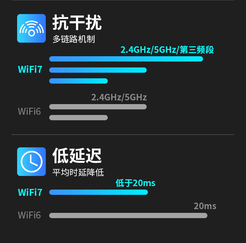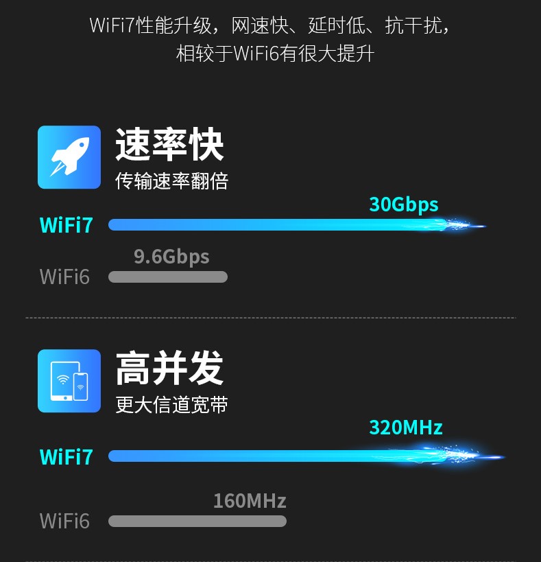 网络的延迟更低、抗干扰性能更强、使用起来更稳定,这是目前升级WiFi7最明显的感受。