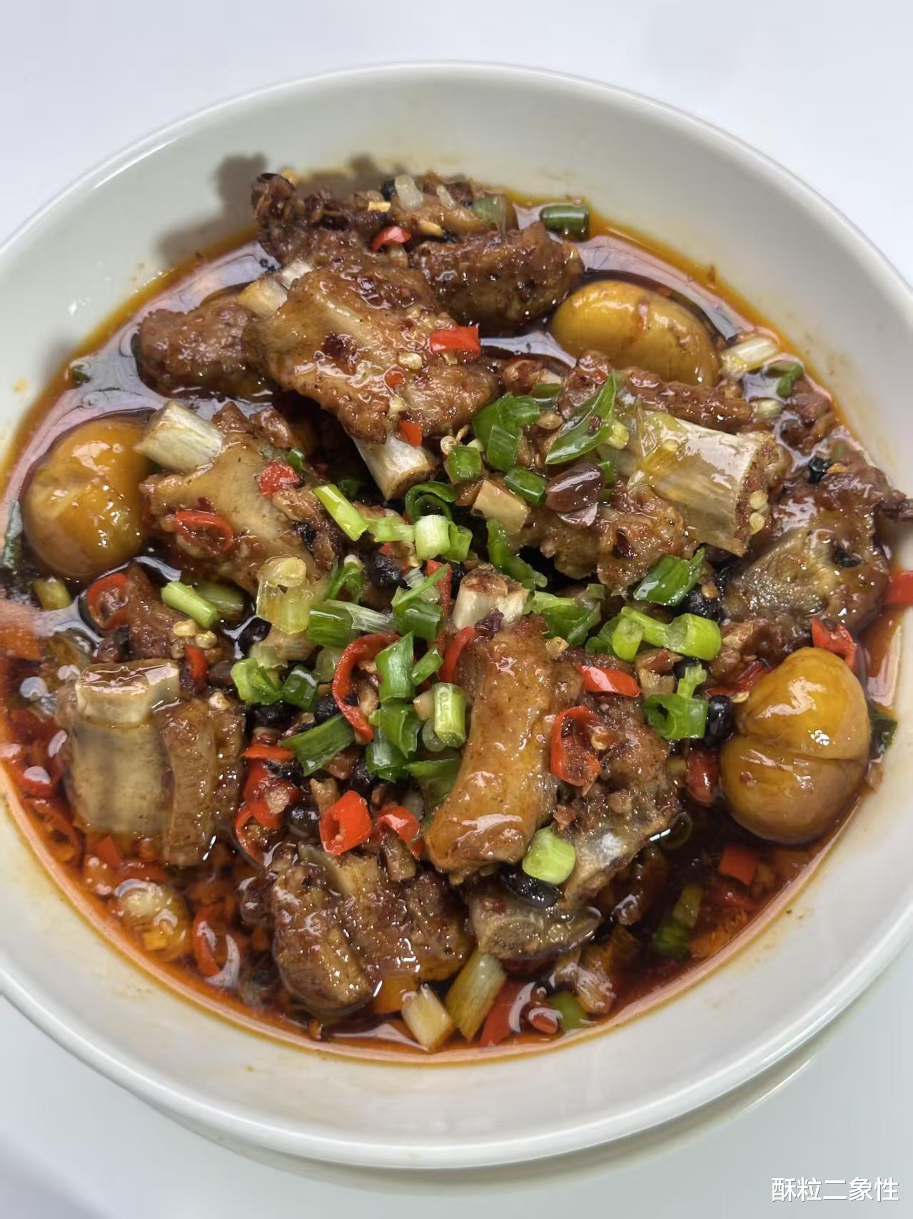 “呲——”开盖瞬间,白雾扑面,像温泉里跳出的辣妹子。葱花一撒,绿得俏皮,筷子抢先一步,戳穿排骨,肉瓣“啪”地绽开,露出里面亮晶晶的汁水。栗子的边缘染了酱色,轻轻一抿,先是甜味探头,接着豆豉的咸香追着跑,最后小米辣冲出来,放了个小烟花。
